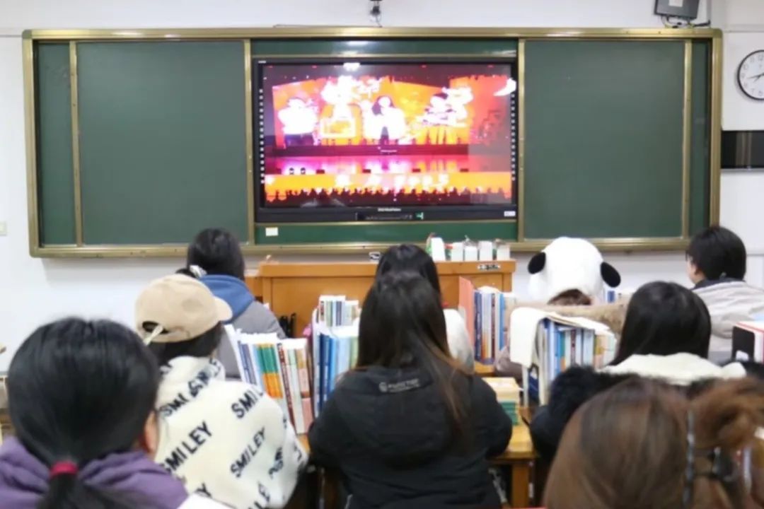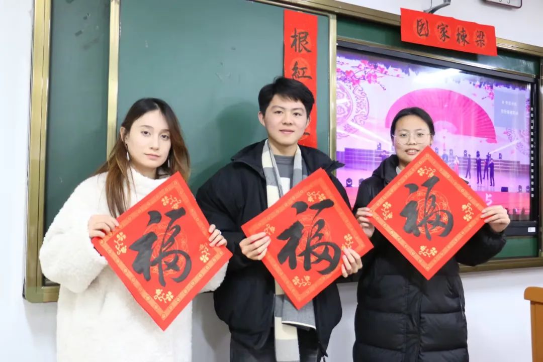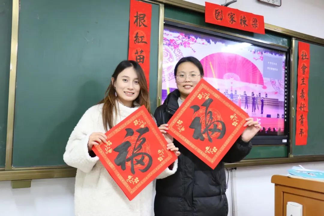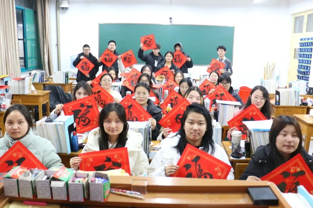 与此同时,在教室内观看现场直播的同学们,热情丝毫不减。每当看到精彩之处,掌声、欢呼声此起彼伏。同学们还提笔书写对新年的祝福,新年“福”到,吉祥美好。在这一刻,全院师生的心紧紧相连,共享这份喜悦。