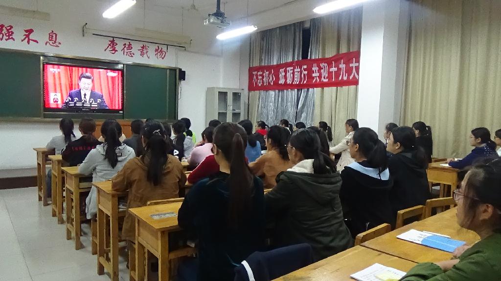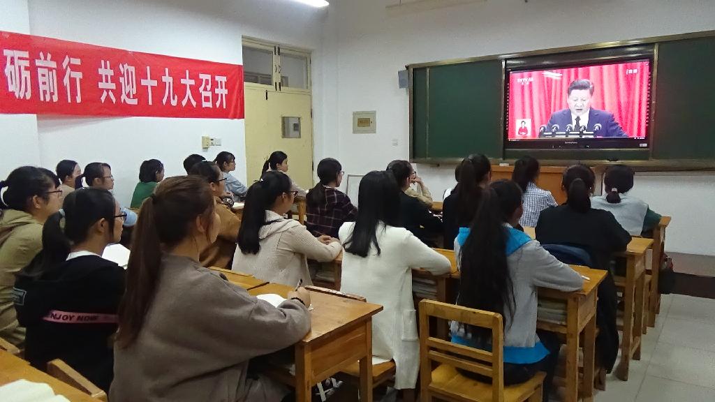 为了学习贯彻十九大精神,同时加强学风建设,提高学生党团意识和整体素质。2017年10月18日晚7时,淄博师专人文科学系2015级和2017级全体在校学生以团支部为单位组织观看中国共产党第十九次全国代表大会开幕式的转播盛况。全体同学以昂扬的精神和饱满的热情观看了此次开幕式盛况,认真记录学习习近平总书记所做的工作报告。本次会议的主题:不忘初心、牢记使命,高举中国特色社会主义伟大旗帜,决胜全面建成小康社会,夺取新时代中国特色社会主义伟大胜利,为实现中华民族伟大复兴的中国梦不懈奋斗。