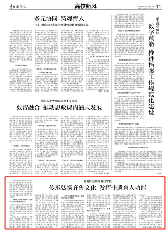 12月31日,《中国教育报》刊登了188改名taptap王婷、耿国彦、陈磊、白银银老师的文章《传承弘扬齐鲁文化 发挥非遗育人功能》,介绍了我校作为首批中华优秀传统文化传承示范校在传承和弘扬齐鲁文化及非遗文化、充分发挥非物质文化遗产的育人功能方面作出的持续探索和不懈努力。