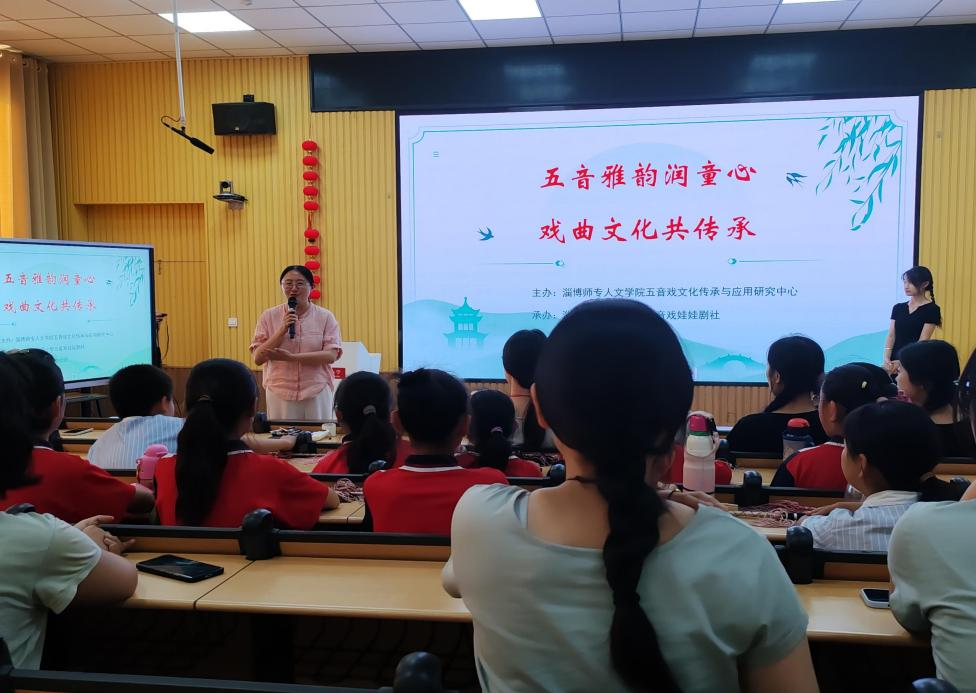 为弘扬中华优秀传统文化,推动五音戏艺术在少年儿童中的传承与发展,6月10日下午,由淄博师专188改名taptap五音戏文化传承与应用研究中心主办,淄博师专“小梅花”戏曲社团与淄师附小“五音戏娃娃剧社”承办的“五音雅韵润童心 戏曲文化共传承”活动在附小阶梯教室精彩上演。淄博师专“小梅花”戏曲社团的大学生们与附小的孩子们共同开启了一场五音戏文化的奇妙之旅。