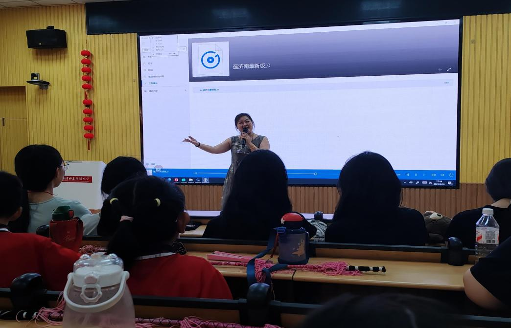 接着就是大家最喜欢的互动环节。“你画我猜”游戏围绕五音戏常见剧目、角色和道具展开,孩子们积极参与,竞相展现自己对五音戏的理解。五音戏方言大挑战,孩子们通过选择方言对应的普通话含义,进一步感受五音戏与地方语言文化的紧密联系。活动最后,石玲老师的一曲《逛济南》将活动推向了高潮。在石老师的婉转唱腔中,结束了本次交流活动。