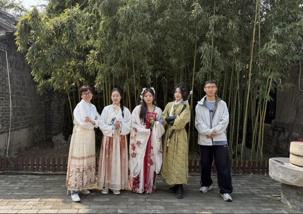 活动期间,师生还结合《聊斋志异》人物与情节,精心编排并拍摄了《绛雪篇》《侠女篇》《狐仙的KPI》等创意短视频。通过“现代绛雪”与原著人物跨时空对话、侠女持剑护花的飒爽姿态、狐仙“管整蛊不管桃花”的诙谐演绎,将经典角色注入当代青年的表达方式,生动呈现了聊斋文化在短视频语境下的创新转化。
