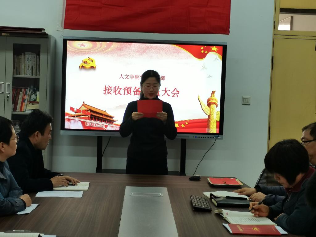 大会按照组织程序,由6名发展对象先后宣读入党志愿书,发展对象的入党介绍人向大会介绍培养情况,支部委员会宣读对发展对象的政治审查报告,参会党员进行充分讨论。最后经无记名投票表决,大会一致同意了6名发展对象的入党申请,发展其为预备党员。之后,预备党员黄龙梅同志代表新党员表态发言。