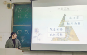韩如同学说:“在这次比赛中,我是作为推荐组选手参加一专多能的比赛,从最开始的考核、院系初赛、学校决赛、一专多能选拔、直到最后的省决赛,大大小小的考核经历了不少。‘路漫漫其修远兮,吾将上下而求索’,我认为在此期间最重要的便是心态和志向。心态决定了你的表现,而志向会决定你能走的多远。在学校选拔初期,我还是单纯抱着去比赛的心理,自主学习和备赛都是为了获得好的比赛结果,而随着备赛时间的推移,我发现自己的心理发生了变化,我认为这不仅是一次比赛,更是一次难得的学习机会,在之后的学习中每天都会接触新知识,或者发现自己的一个小毛病,这些都让我欣喜不已,也期待着新一天的学习。”备战期间,她将全部的精力都灌注在此次比赛上,心无旁骛地备课,睡觉前、吃饭时亦不忘背稿……