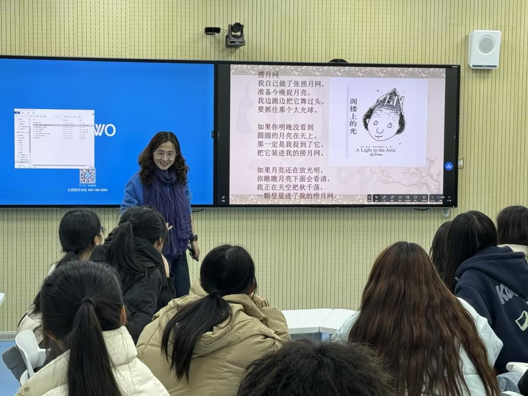 讲座伊始,田玲老师便从个人教学经验出发,围绕“喜欢、互助、坚守”三个关键词,和大家分享了自己有趣生动的教育经历。她提出,教育最优化境界是师生共同受益与发展,教师在育人的同时,更要充分发挥自身特色,实现个人教育梦想。在此基础上,田玲老师着重提出了小学生阅读习惯的培养,通过展示生动的课堂实例和有趣的教学视频,与同学们分享师生共读、家长带动、集体朗读等培养方法,指出同学们应当紧跟新课堂、新课标,学会多元化构思教学方法,在未来的教育之路上行稳致远。