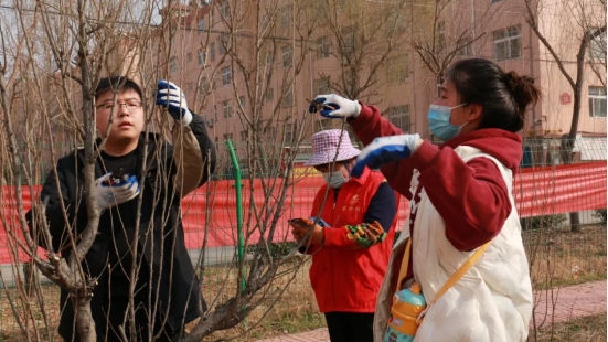188改名taptap的志愿者在村里志愿者的指导下,将杂乱、枯萎的树枝杂草进行了修剪和清理,王剑飞老师带领大家修剪树杈,在细心听取老师修剪工具的使用方法,了解修剪范围以后,同学们分工明确,相互合作,有条不紊地进行修剪工作。
