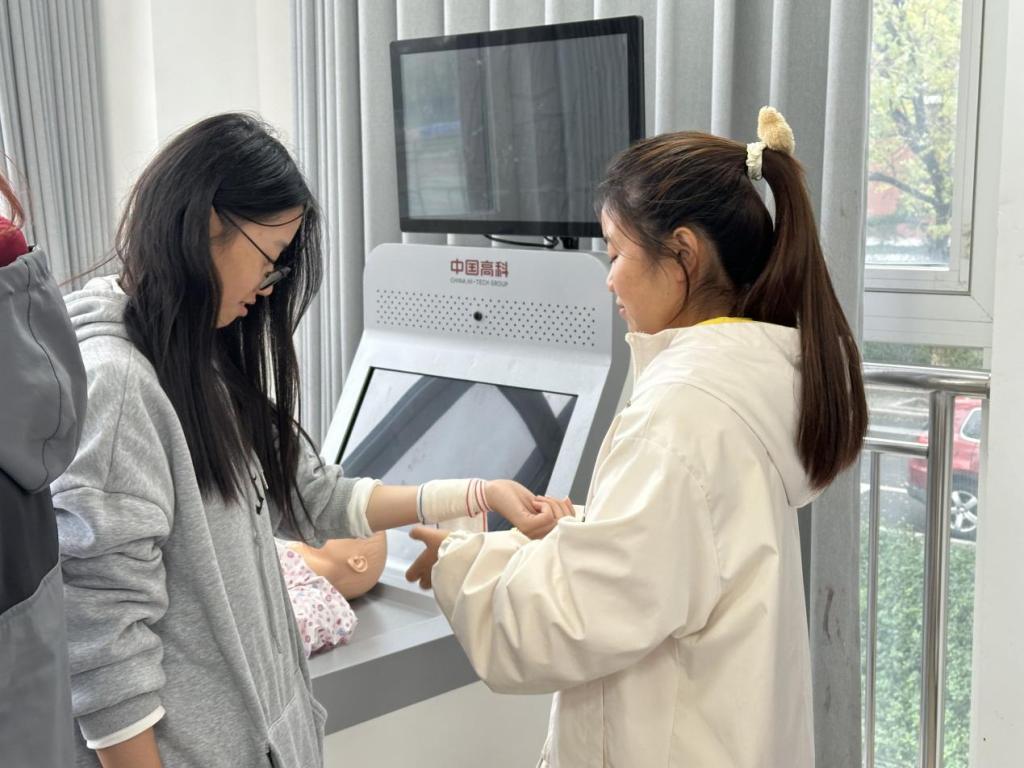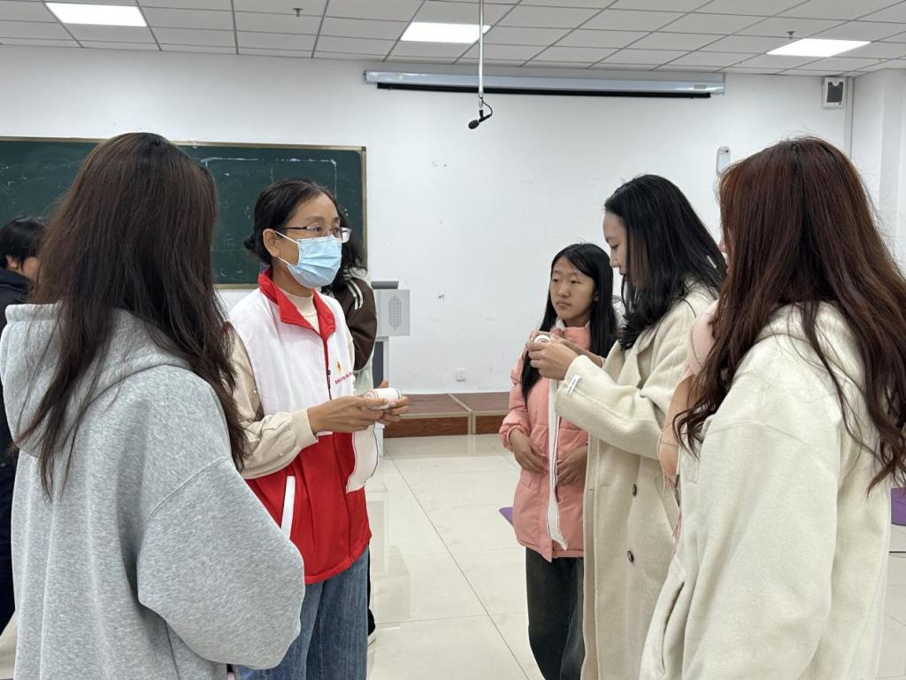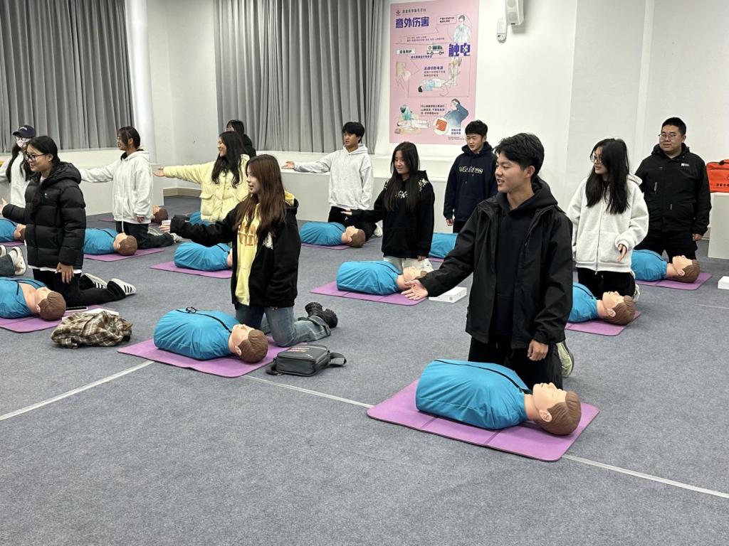 实操过程中,专业的校医室老师,为同学们带来了丰富而实用的急救知识和技能。在心肺复苏实操环节,老师以模拟橡胶人为器具,现场演示心肺按压的正确手法和人工呼吸方式,帮助大家较为直观地掌握了心肺复苏现场紧急救援知识和正确处理方法。同学们认真聆听,积极参与实操练习。在老师的指导下,逐步掌握了正确的心肺复苏方法。