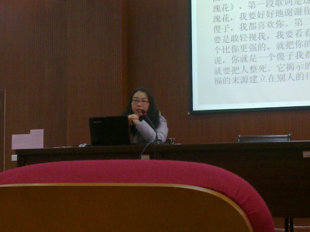 2011年12月8日下午 ,由校团委主办的,邀请人文科学系辅导员王敏老师在奂山书院面向全校团支书,开展了 一次关于“世界观、人生观、价值观探讨”的讲座。
