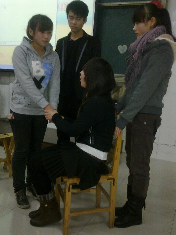 2011年12月12日晚 ,人文系语教八班刘晓燕等人在阶梯教室(六)参加了心理话剧表演大赛,并